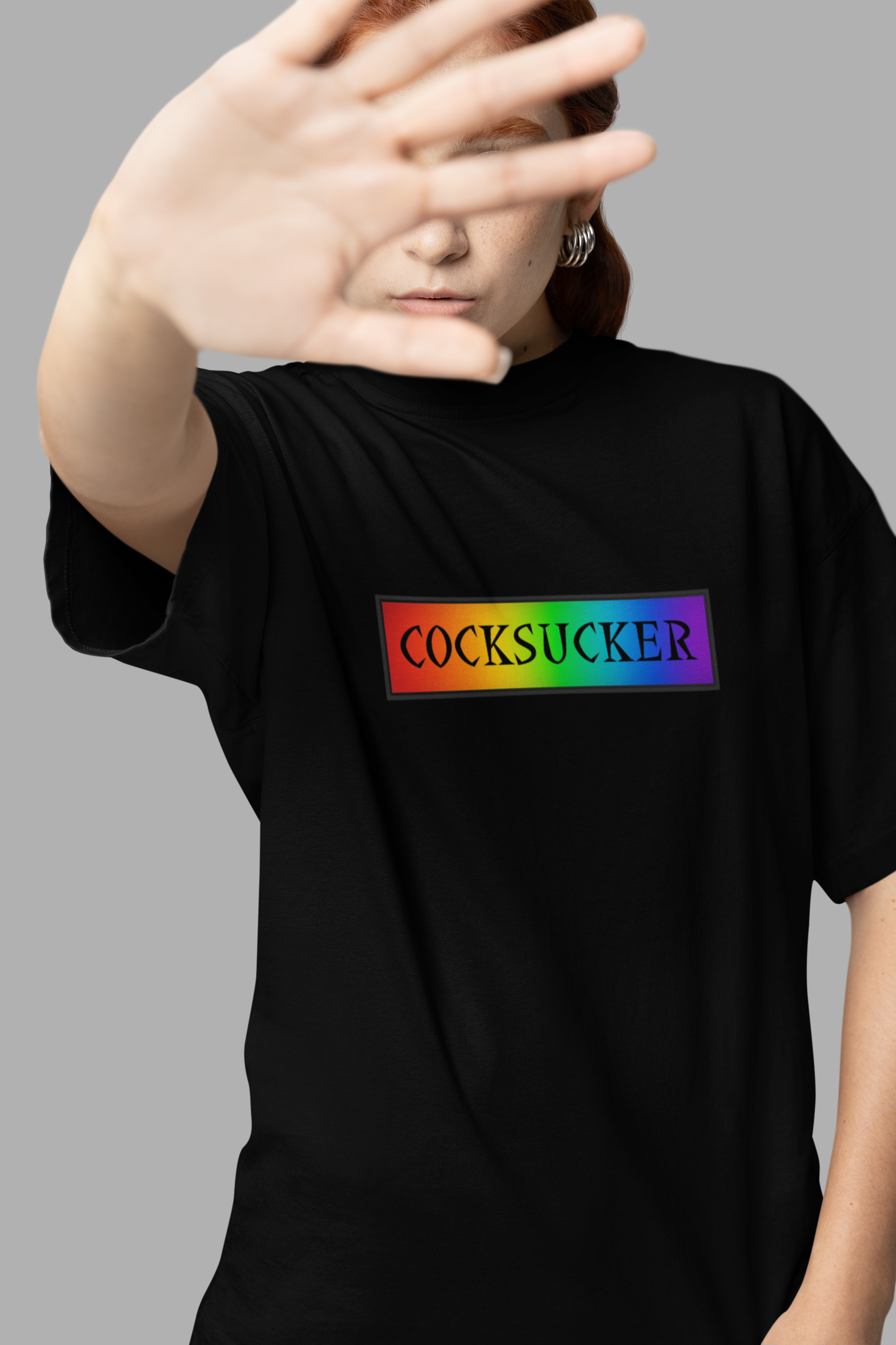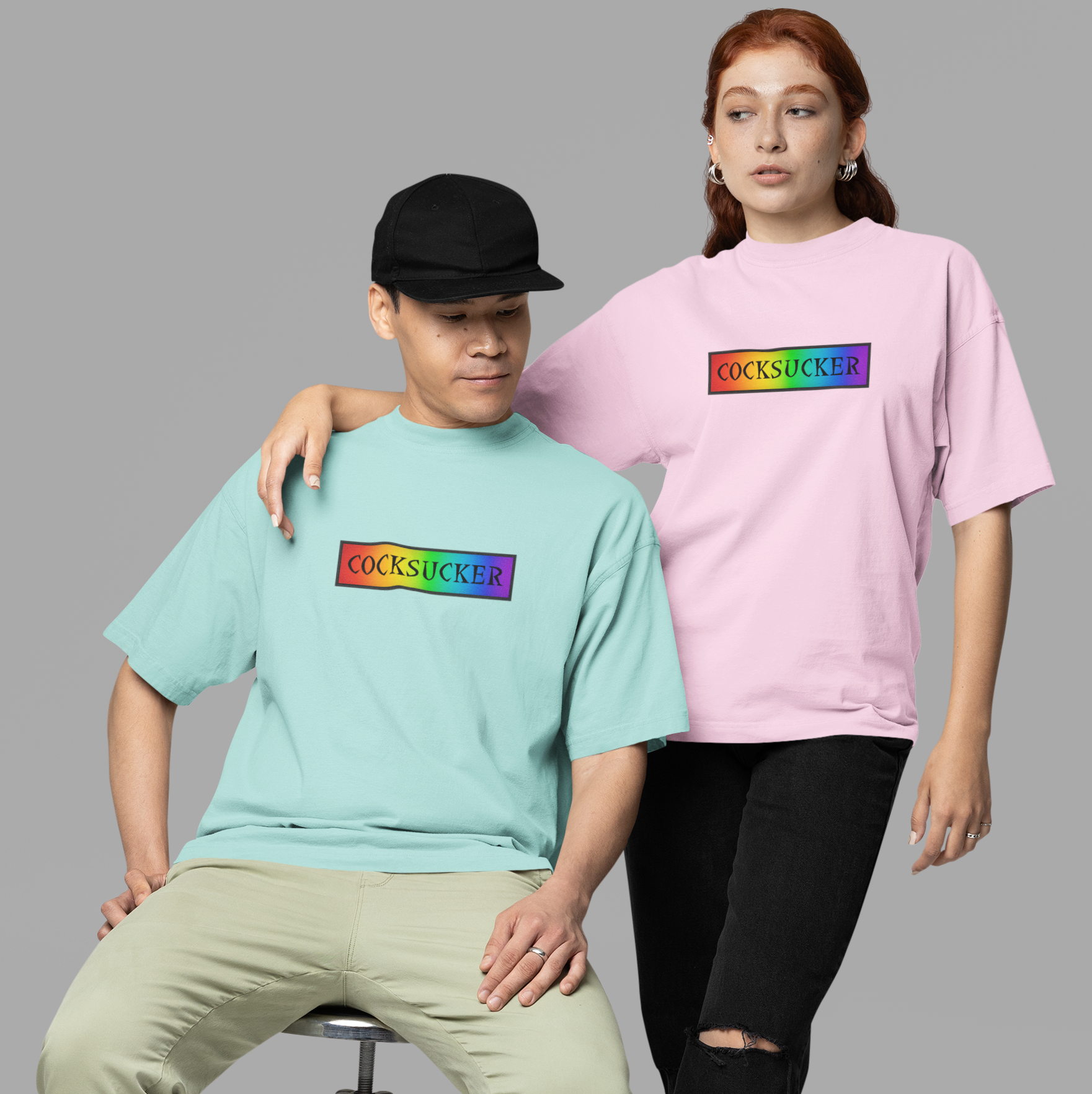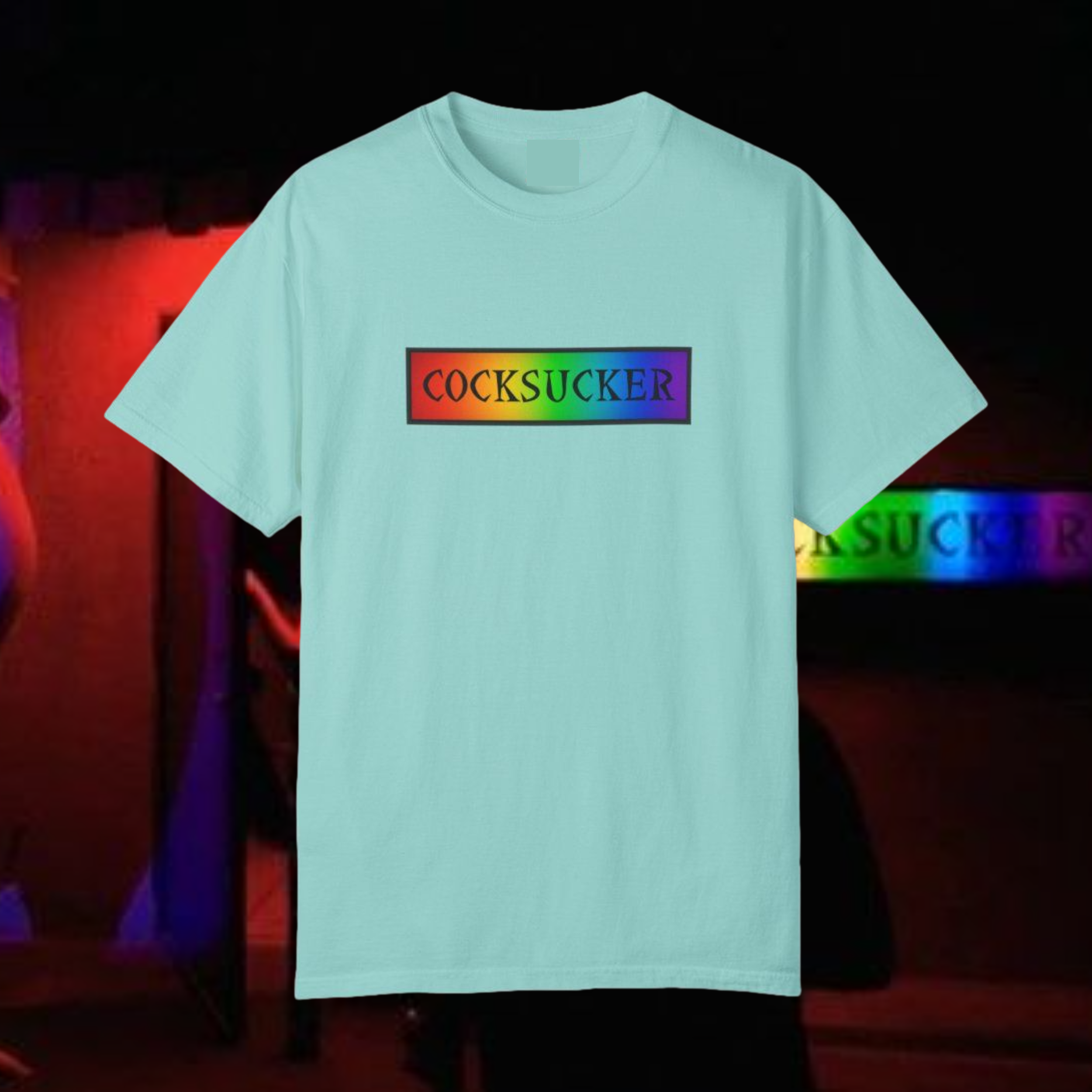 A play on the "Cocksucker" gay bar from the movie But I'm a Cheerleader for those who suck strap. The design features the light-up sign from the movie across the center of the tee, but reads "Strapsucker". Available in black and the But I'm a Cheerleader color palette pink (blossom) and blue (chalky mint). Also available in the original "Cocksucker".